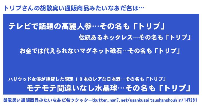 | ヒーロー風カッコイイあだ名 | 『愛の使者トリプ』『ウルトラ戦士トリプ』 |