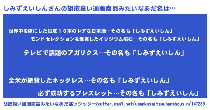 | 意味不明あだ名 | 『自称しみずえいしん』 |