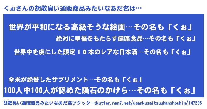| 意味不明あだ名 | 『住所不定無職くぉ(47歳)』『永久保存くぉ』 |