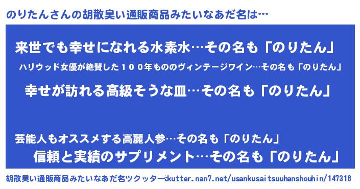| 意味不明あだ名 | 『のりたんフォーエバー』『自称のりたん』 |