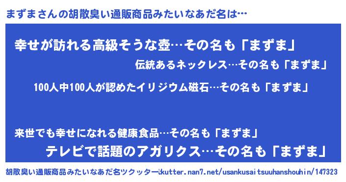 | ヒーロー風カッコイイあだ名 | 『正義の使者まずま』『魔戒騎士マズ』 |
