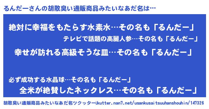るんだーさんの胡散臭い通販商品みたいなあだ名をツクッター!