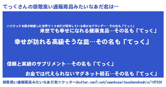 てっくさんの胡散臭い通販商品みたいなあだ名をツクッター!