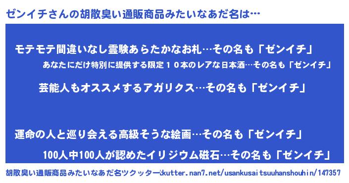 ゼンイチさんの胡散臭い通販商品みたいなあだ名をツクッター!