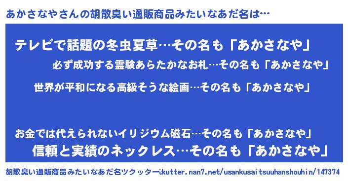 | 男性向けラノベタイトル風あだ名 | 『やはりあかさなやの青春ラブコメはまちがっている 』 |