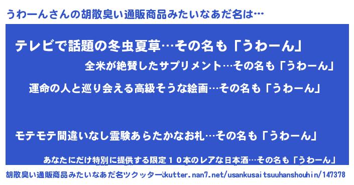 | 意味不明あだ名 | 『うわーんフォーエバー』『自称うわーん』 |