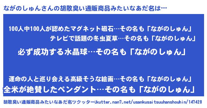 | ヒーロー風カッコイイあだ名 | 『スーパーナガノシュン』『炎刃騎士ナガ』 |
