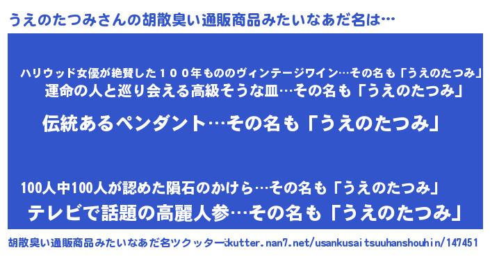 | 意味不明あだ名 | 『たけのこ科うえのたつみ属』 |