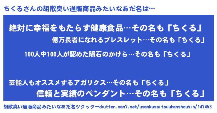 | ヘコむあだ名 | 『ちくる(苦笑)』『ちくを』『牛乳』 |