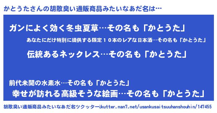 | 意味不明あだ名 | 『とにかく怪しいかとうた』 |