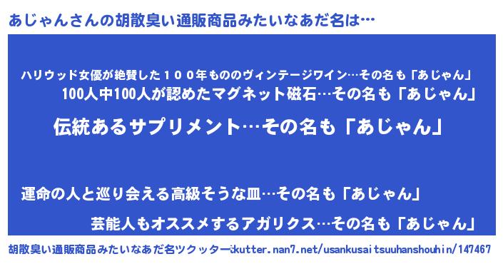 | 意味不明あだ名 | 『とにかく怪しいあじゃん』 |