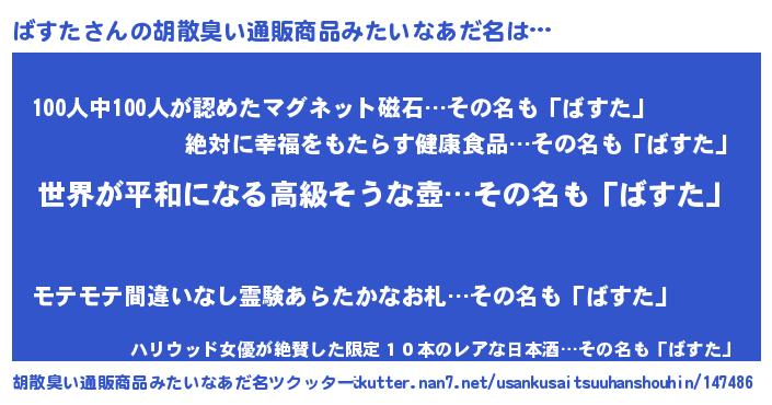 | ヘコむあだ名 | 『豆乳』『ばすた(小並感)』『ばすを』 |