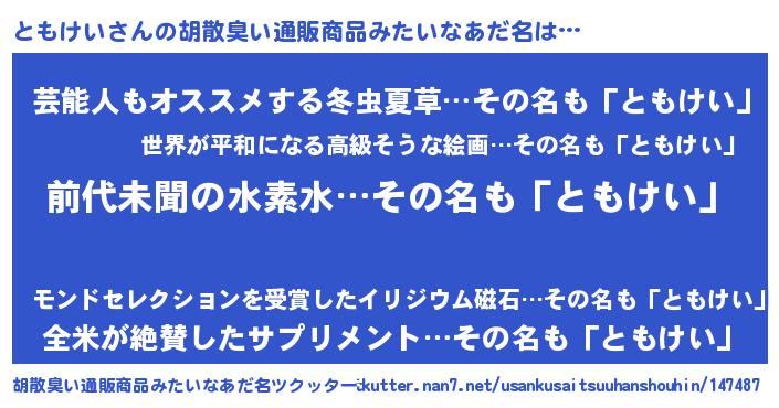 | ヘコむあだ名 | 『ともけい(震え声)』『ともぷりん』 |