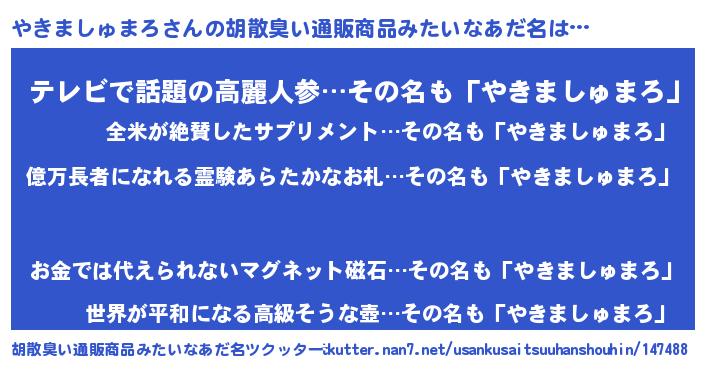 | 伝説のあだ名 | 『封印されしスナイパーやきましゅまろ』 |