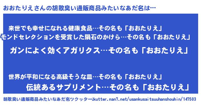 | 意味不明あだ名 | 『自称おおたりえ』『永久保存おおたりえ』 |