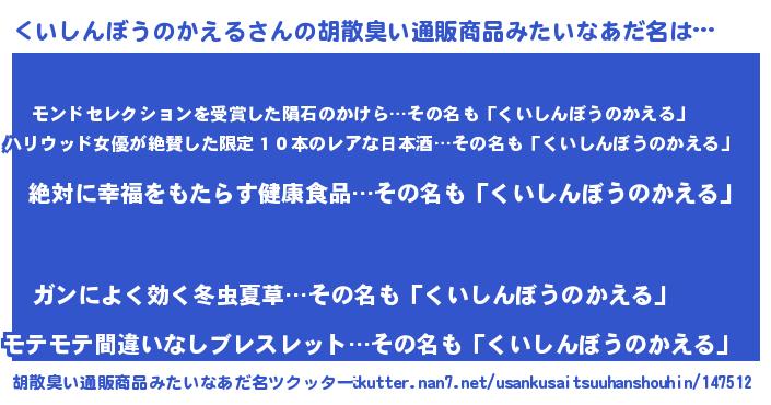 | ヒーロー風カッコイイあだ名 | 『ネオクイシンボウノカエル』 |