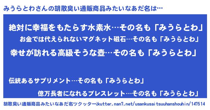 | 肩書あだ名 | 『みうらとわ大統領』『みうらとわ大佐』 |