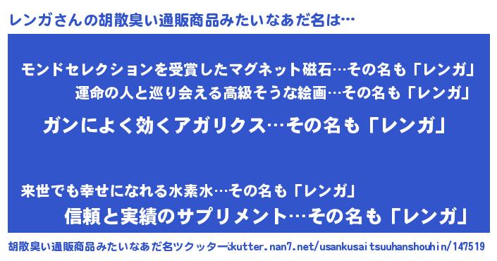 レンガさんの胡散臭い通販商品みたいなあだ名をツクッター!