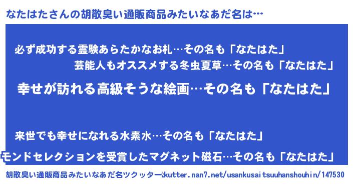なたはたさんの胡散臭い通販商品みたいなあだ名をツクッター!