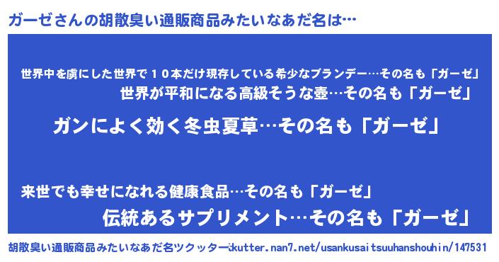 | 意味不明あだ名 | 『自称ガーゼ』『住所不定無職ガーゼ(79歳)』 |