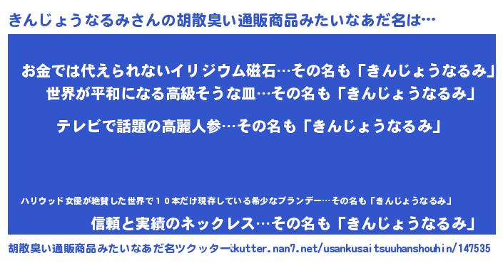| 肩書あだ名 | 『きんじょうなるみ閣下』 |