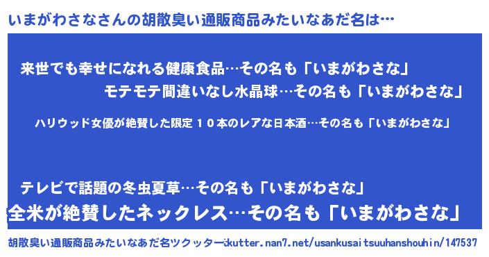 | 意味不明あだ名 | 『住所不定無職いまがわさな(41歳)』 |