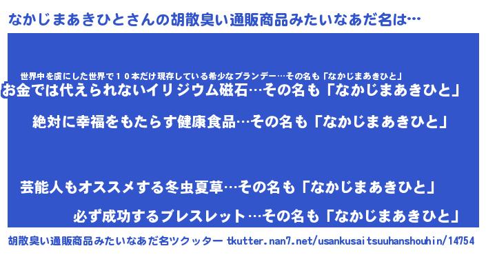 | 可愛いあだ名 | 『なかじまあきひとママ』『ぽよなか』 |