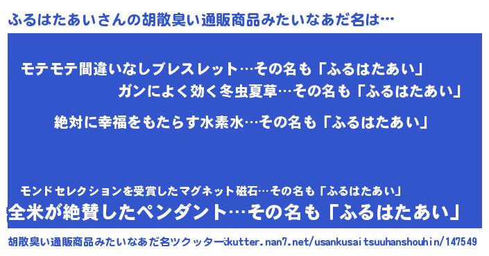 | ヘコむあだ名 | 『ふるはたあい(遠い目)』『ふるにー』 |