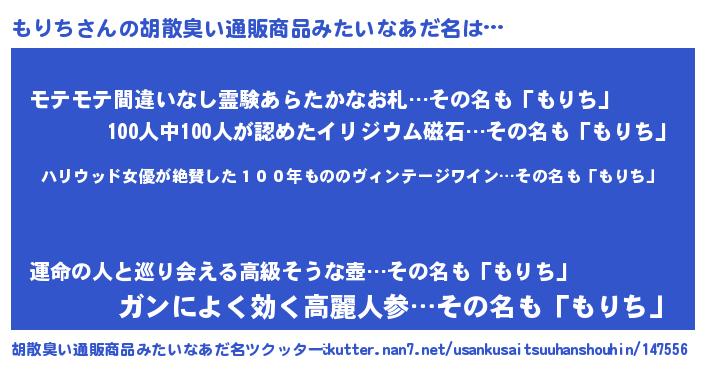 | 男性向けラノベタイトル風あだ名 | 『モリチスレイヤー』『魔弾の王ともりち』 |