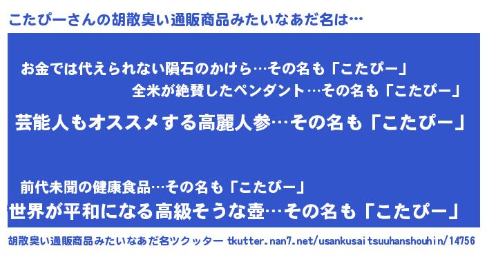 | 女子向けラノベタイトル風あだ名 | 『闇のこたぴー』『こたぴー恋絵巻』 |