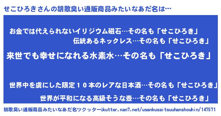 | ヘコむあだ名 | 『せこひろき(遠い目)』『豆乳』 |