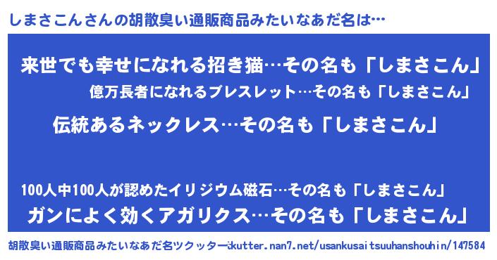 | ヘコむあだ名 | 『しま太郎』『しまさこん(爆)』 |