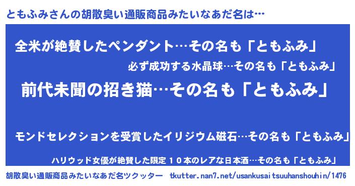 | ヘコむあだ名 | 『ともふみ(笑)』『ともっ子』『豆乳』 |