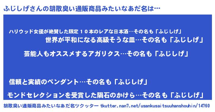 ふじしげさんの胡散臭い通販商品みたいなあだ名をツクッター!