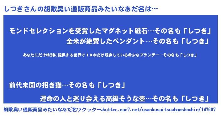| ヒーロー風カッコイイあだ名 | 『仮面シツダー』『友情の使者しつき』 |