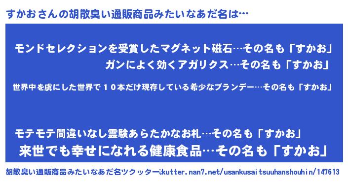 | ヘコむあだ名 | 『すかお(震え声)』『すかにー』 |