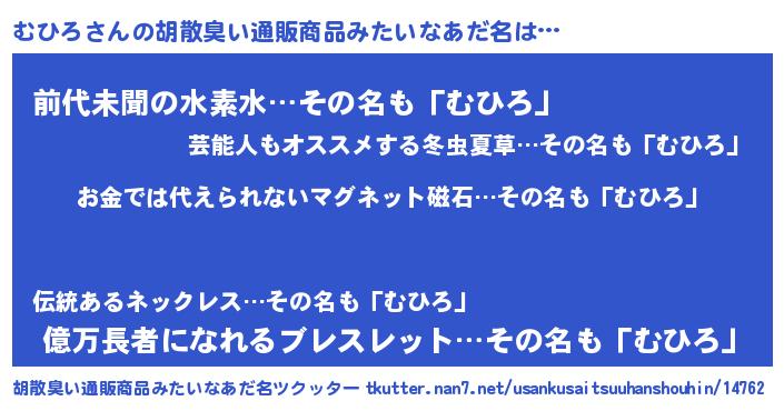 | ヘコむあだ名 | 『むひろ(笑)』『むひっふぃ~』 |