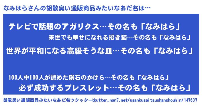 | 肩書あだ名 | 『なみはら国家主席』『なみはら総統』 |