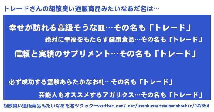 | 意味不明あだ名 | 『とにかく怪しいトレード』 |