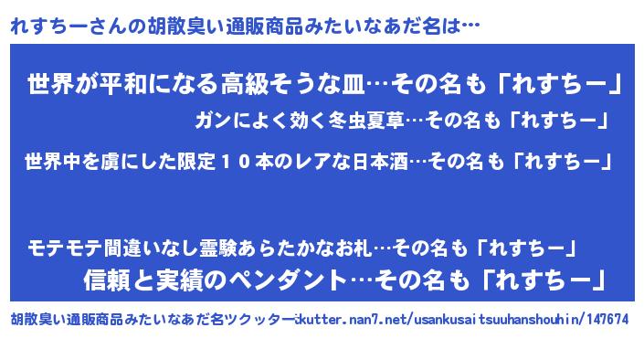 | ヘコむあだ名 | 『豆乳』『れすぷりん』『れすもー』 |