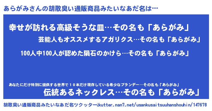 | 欧米人風あだ名 | 『ダニエルあらがみ』『ウサインあらがみ』 |