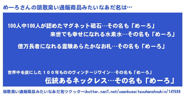 | 意味不明あだ名 | 『ペロリンめーろ』『永久保存めーろ』 |