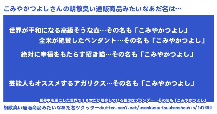 | 意味不明あだ名 | 『永久保存こみやかつよし』 |