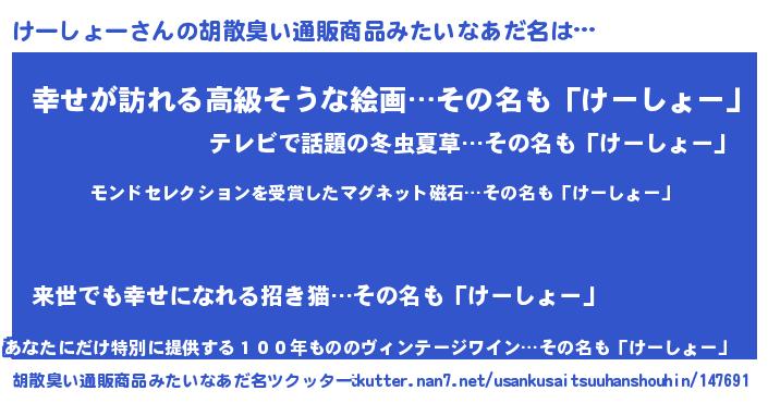 | 伝説のあだ名 | 『救世主となる技術者けーしょー』 |