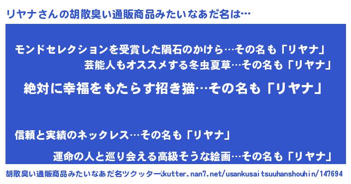 | ヘコむあだ名 | 『リヤナ(笑)』『レバニラ』『リヤを』 |