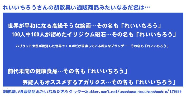 | 意味不明あだ名 | 『住所不定無職れいいちろう(86歳)』 |