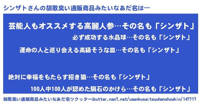 | 恥ずかしいあだ名 | 『シンっちょ』『シンザトデラックス』 |