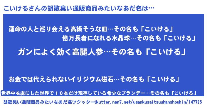 | 意味不明あだ名 | 『自称こいける』『こいけるフォーエバー』 |
