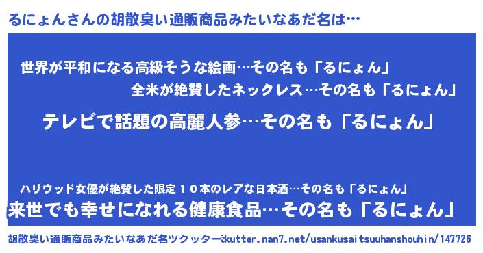 | ヘコむあだ名 | 『豆乳』『るにょん(笑)』『るにを』 |