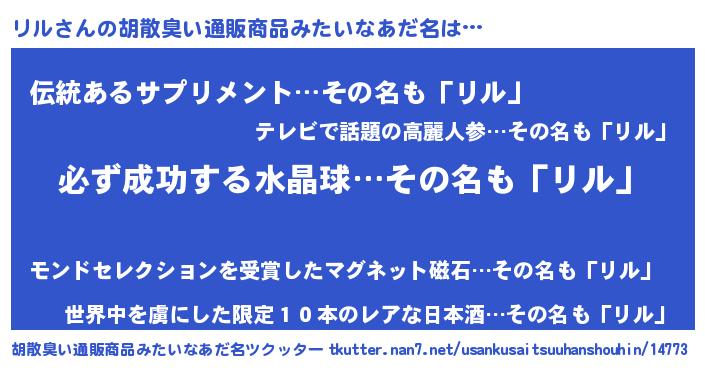 | ヘコむあだ名 | 『リルふぇ~』『リルぷりん』 |